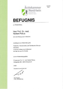 Die Ärztekammer Nordrhein bestätigt unsere Weiterbildungskompetenz in der Plastischen, Rekonstruktiven und Ästhetischen Chirurgie.